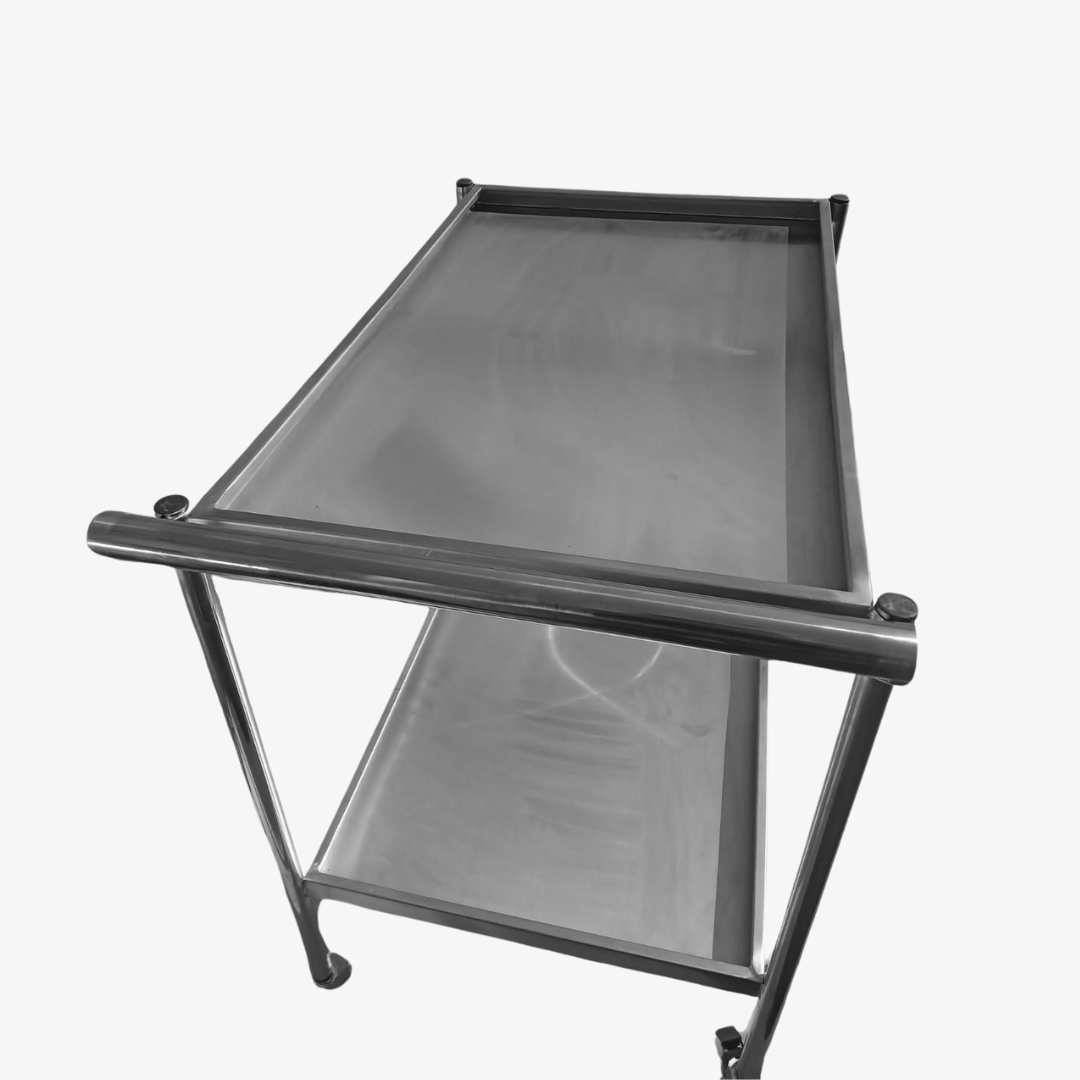 Fabricada no Aço 304. com pés tubulares em aço inox 31,5″ e sapatas niveladoras. Medidas: 1100x600x900.